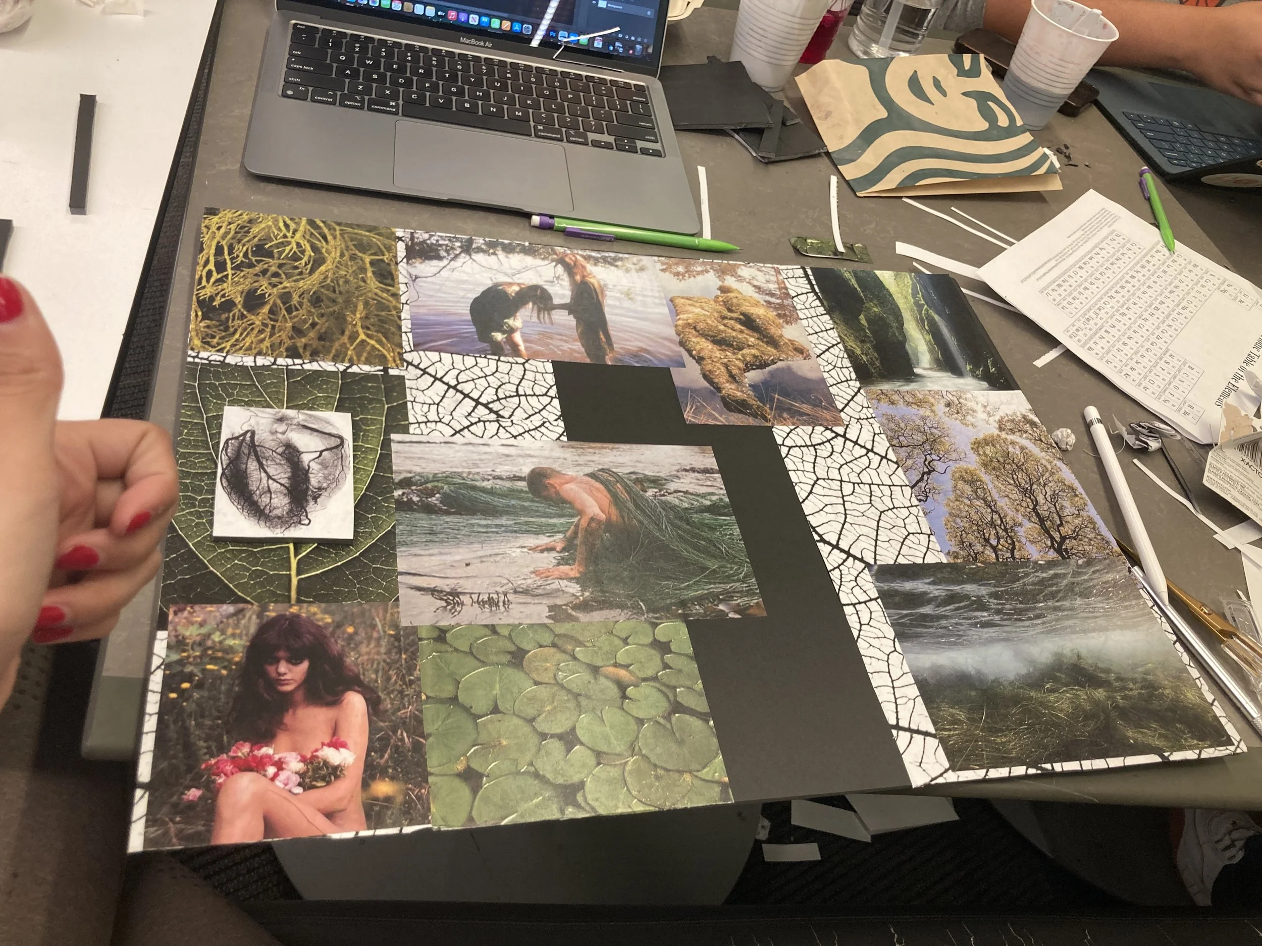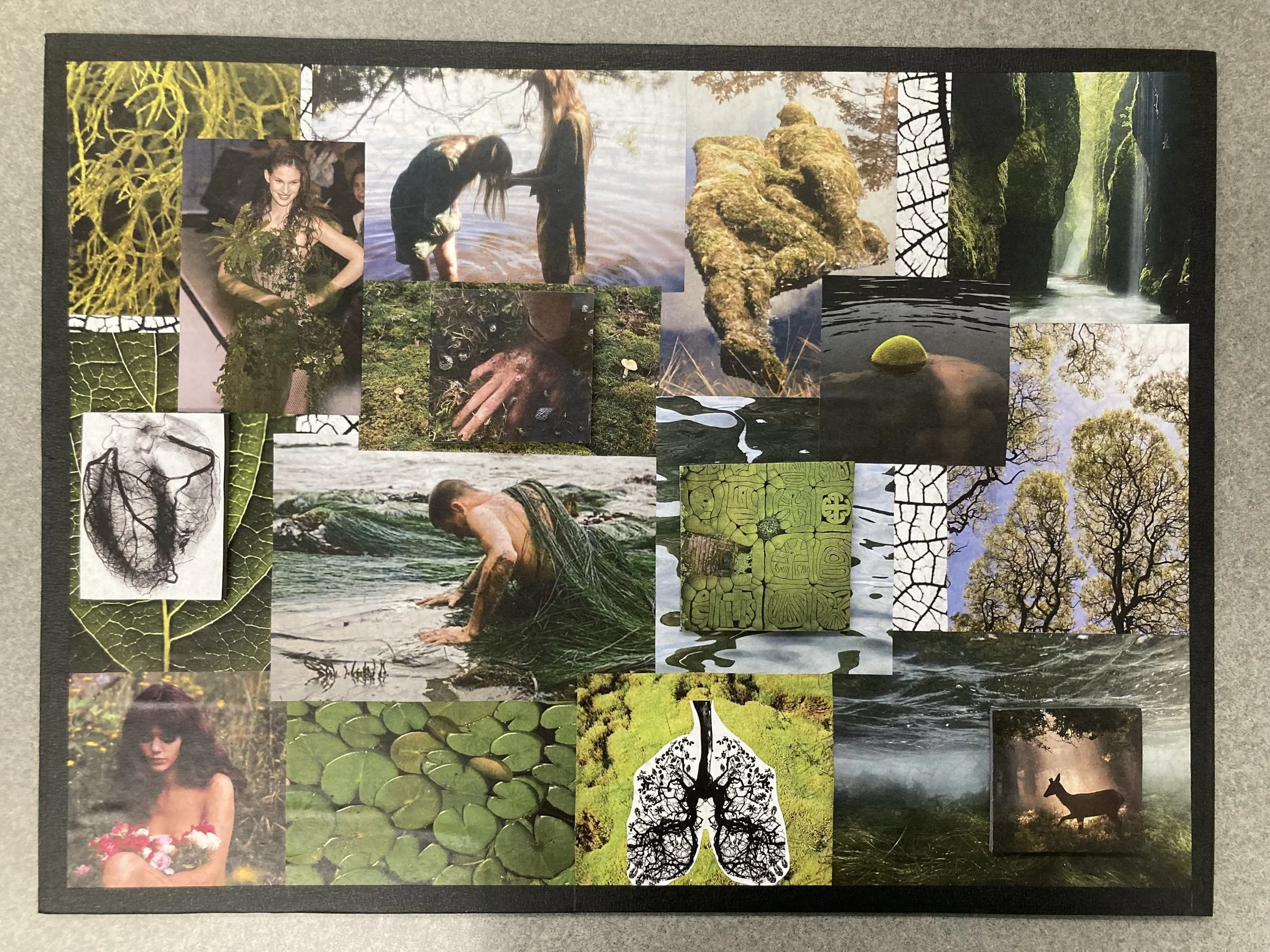 After finalizing the digital mock-up, I printed all the images in various sizes to create depth and variation. I carefully trimmed each picture by hand, taking time to clean the edges and maintain a professional finish. I then arranged the cut-outs on a large foam board, referencing my iPad layout as a guide but also allowing room for creative adjustments as the board came to life. Once everything felt balanced and visually cohesive, I glued each piece into place, ensuring the composition felt intentional and harmonious.